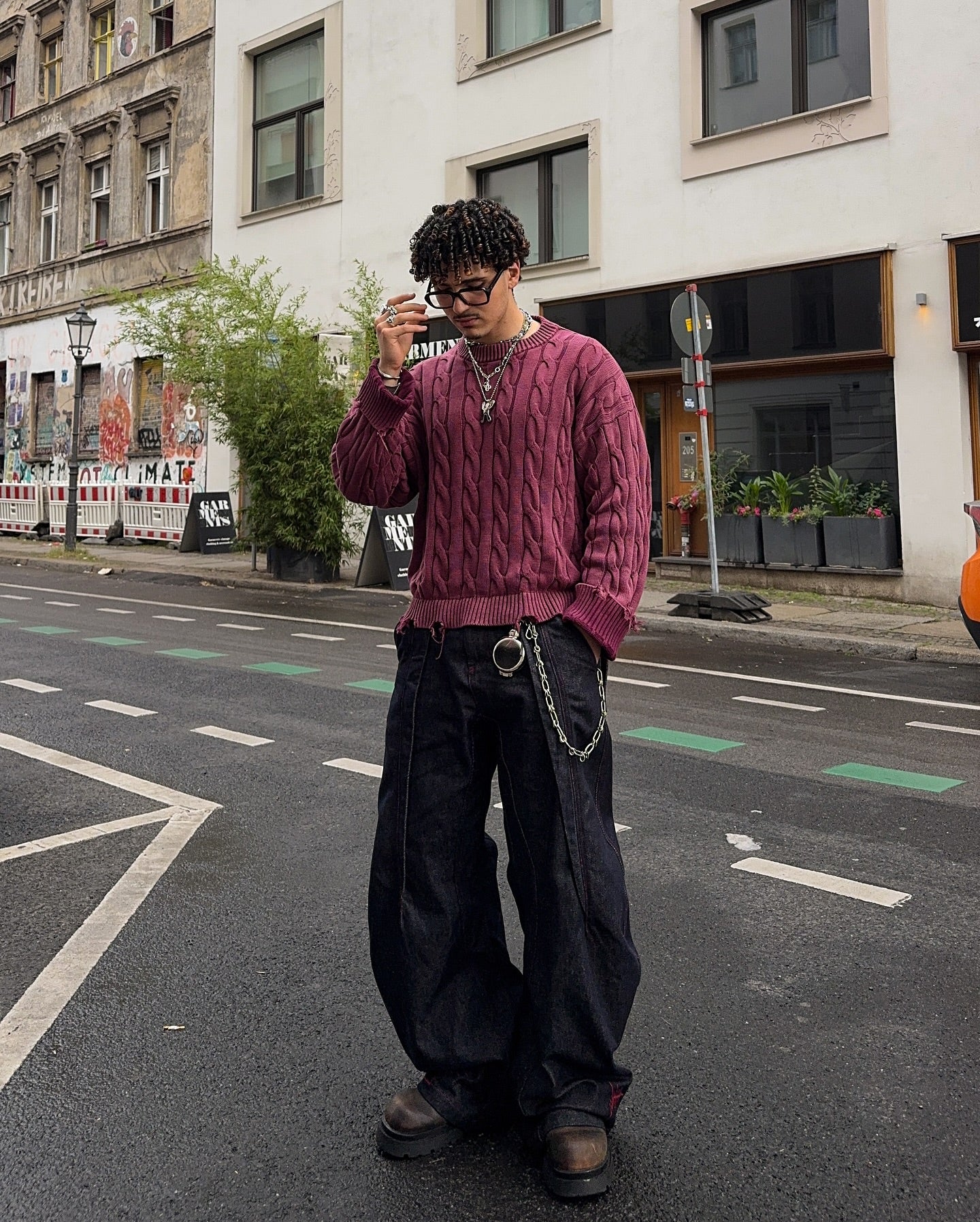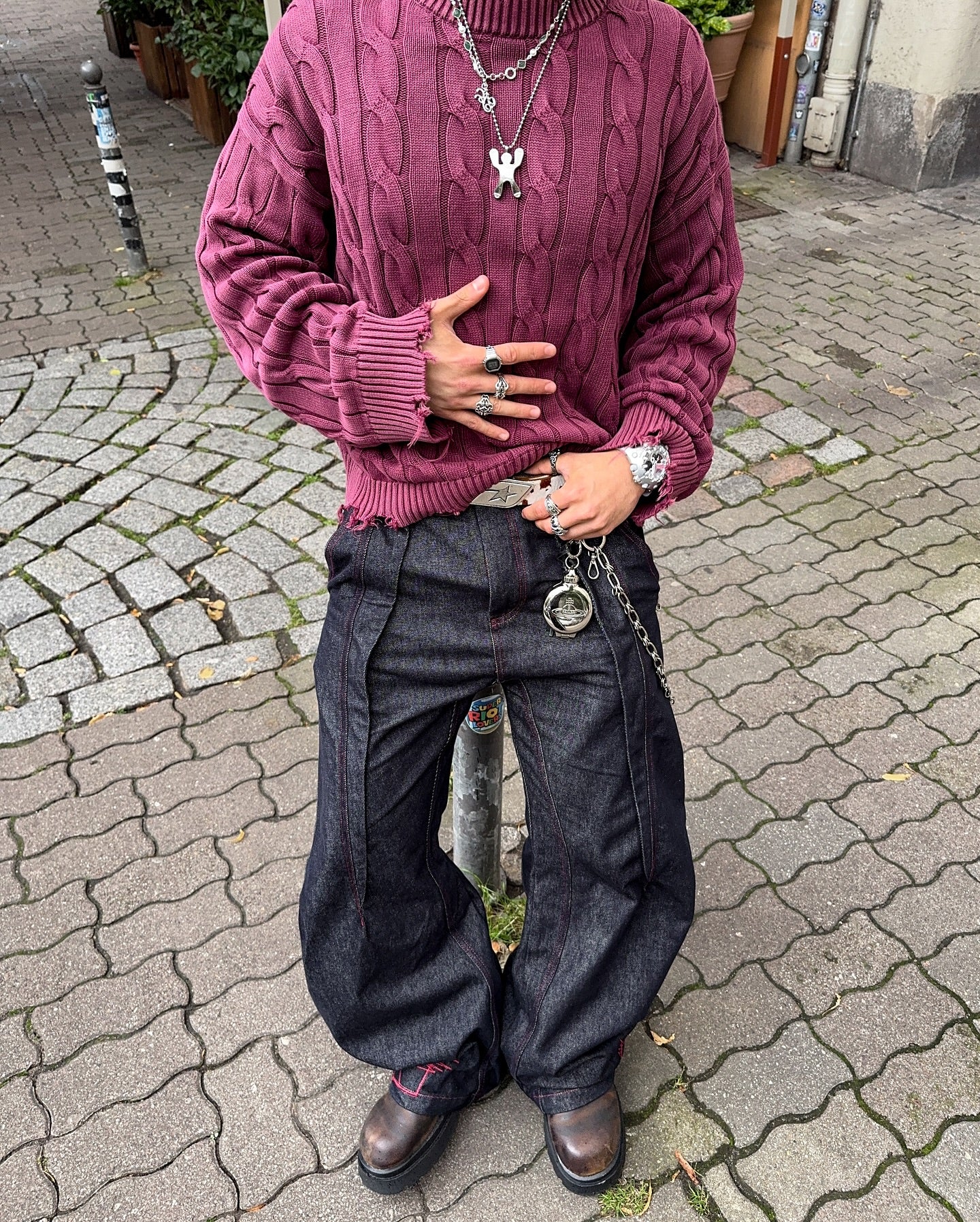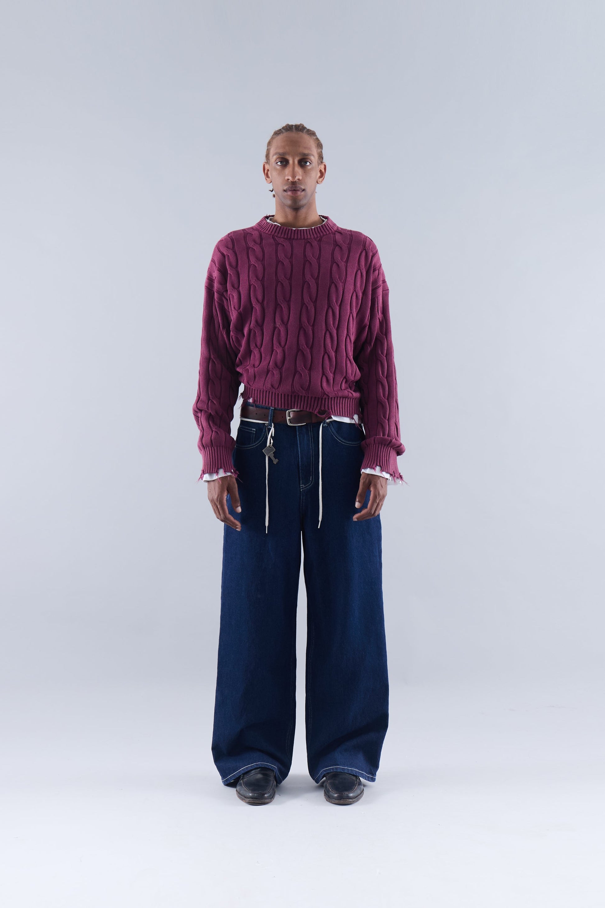 CABLE KNIT DISTRESSED SWEATER